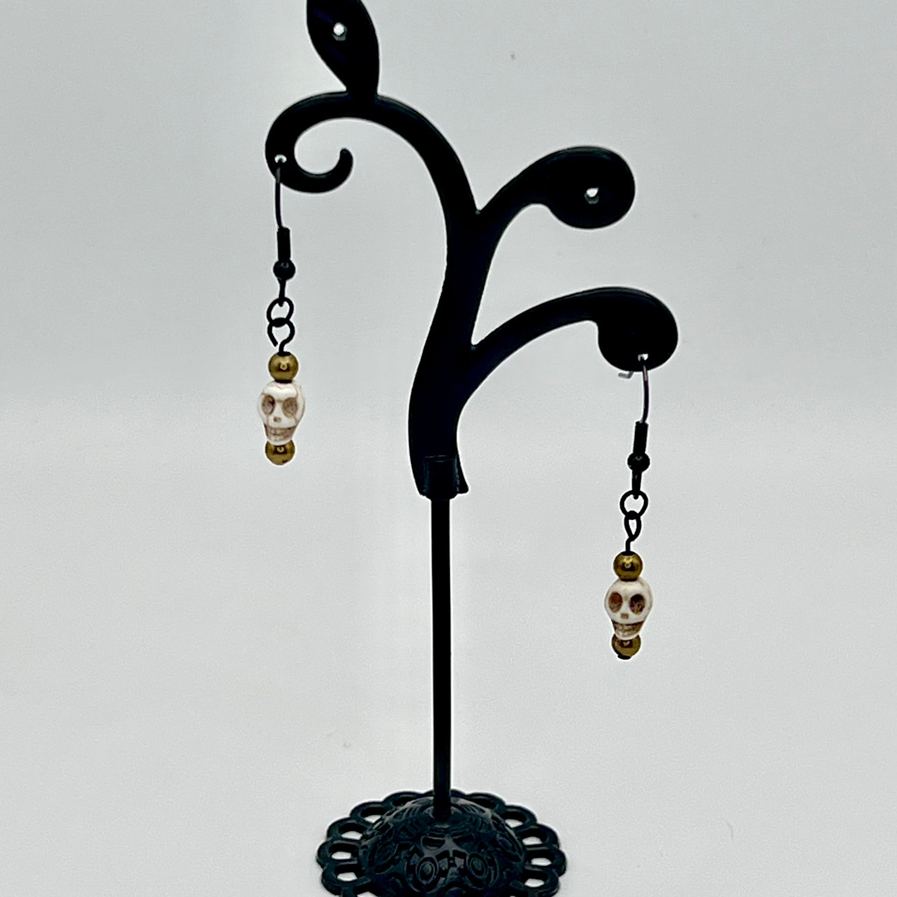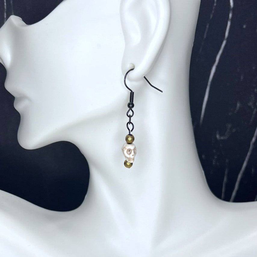 Edgy meets elegant with these lightweight skull earrings. Featuring golden bead accents for luxe, it's perfect for adding a bit of attitude to any outfit. It never hurts to sparkle even in the afterlife.