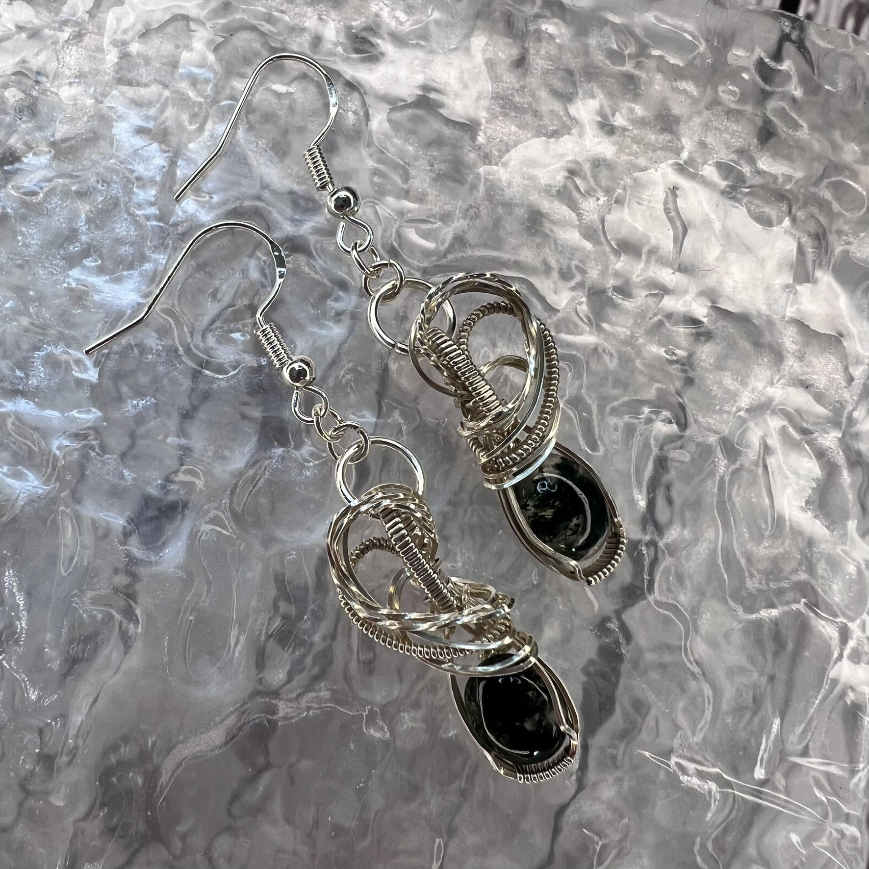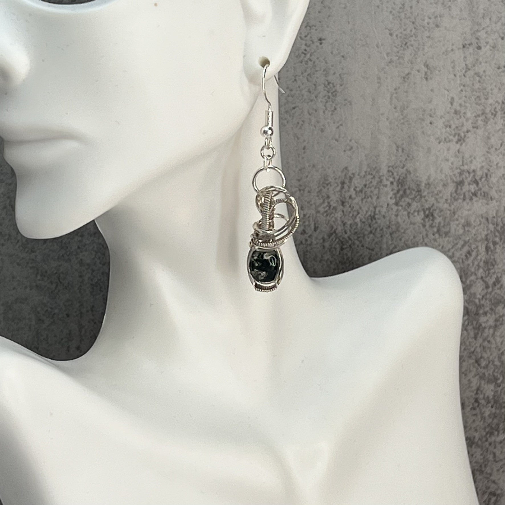 Oval Moss Agate Wrapped in Sterling Silver with Sterling Hooks