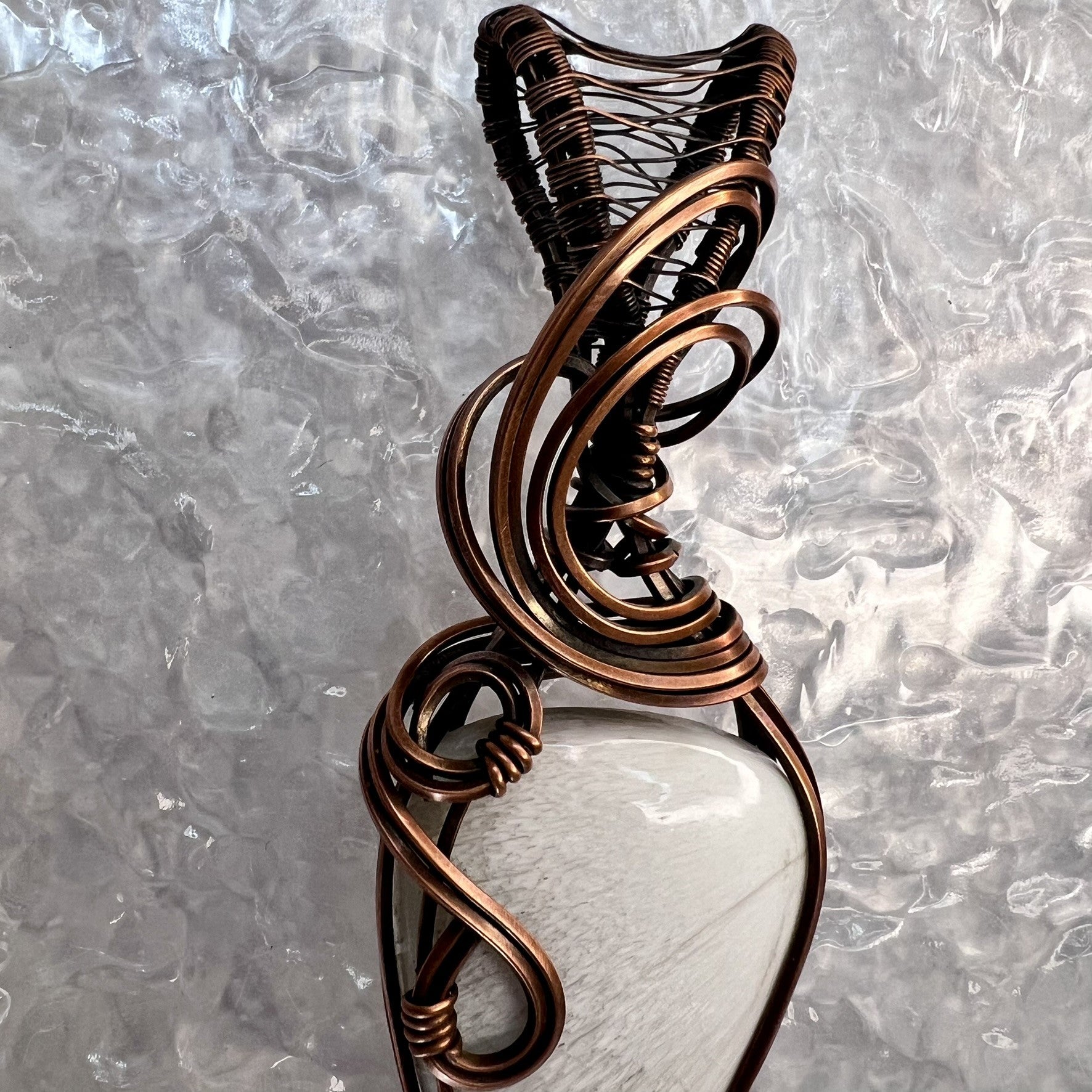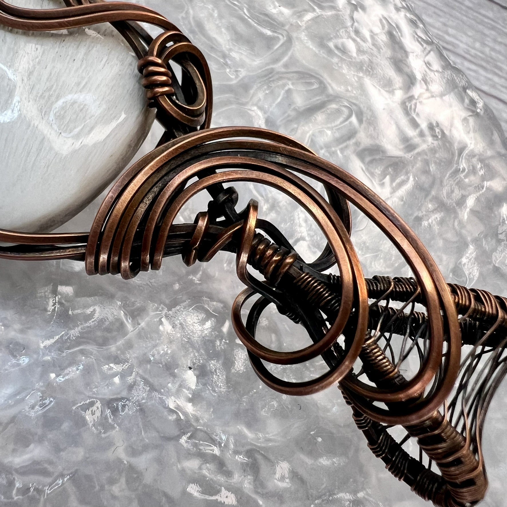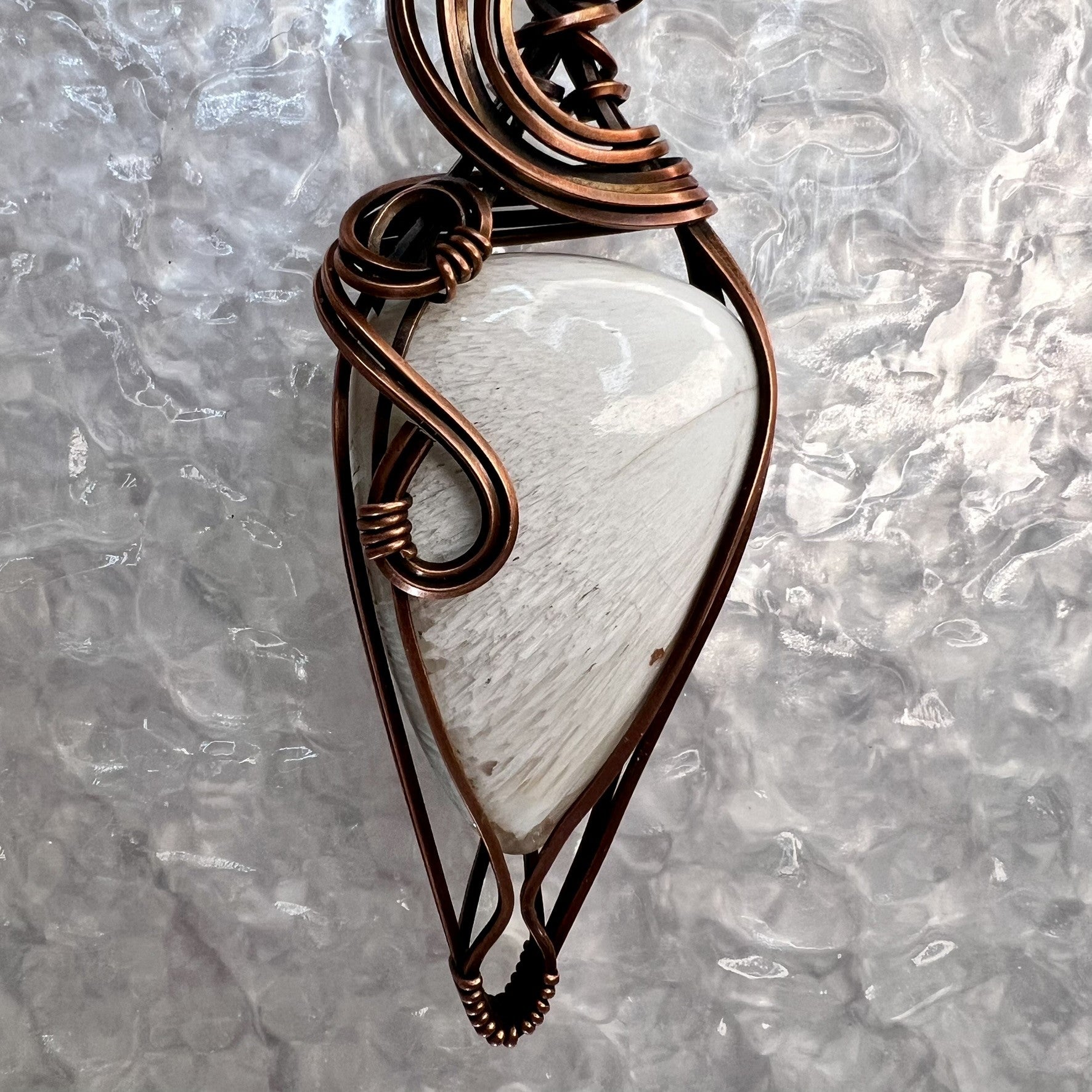 Make way for Titanic Blush, a pendant that commands attention the moment it enters the room. This colossal copper piece is cradling an oval, Pink Scolecite stone that blushes brighter than your most dramatic secrets. Bold, eye-catching, and unapologetically over-the-top. For the kind of person who wants their accessories to be impossible to ignore.